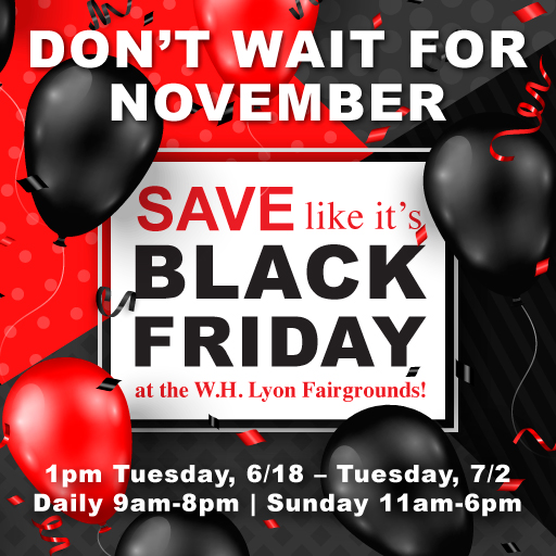 Save like it’s Black Friday now on over 3000 vehicles from 10 area dealerships at the W.H. Lyon Fairgrounds.